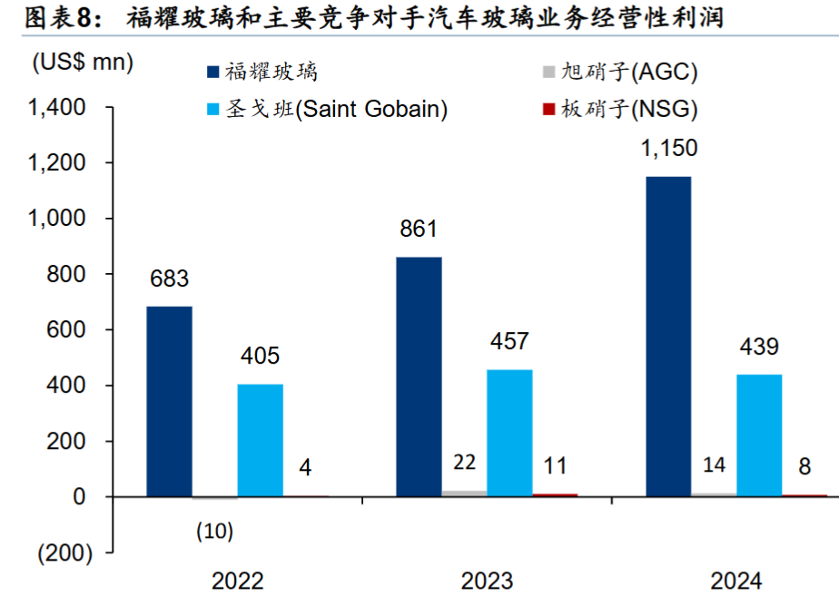 从收入端看,福耀逐步超越竞争对手。如果看利润,那差别就更大了。