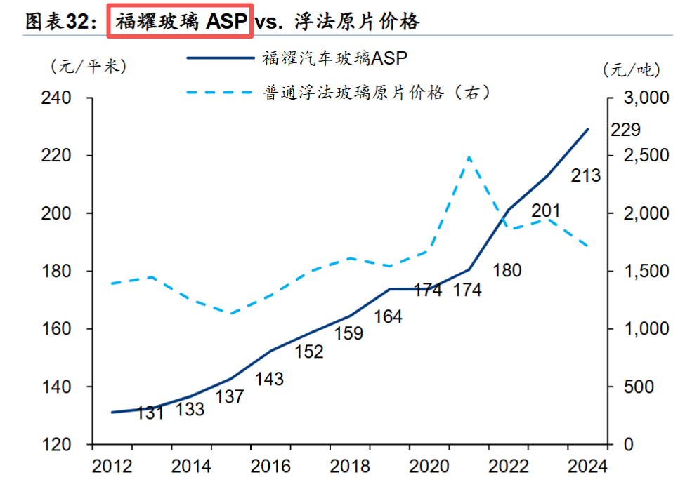 从下图可知,福耀玻璃的ASP逐年提高。