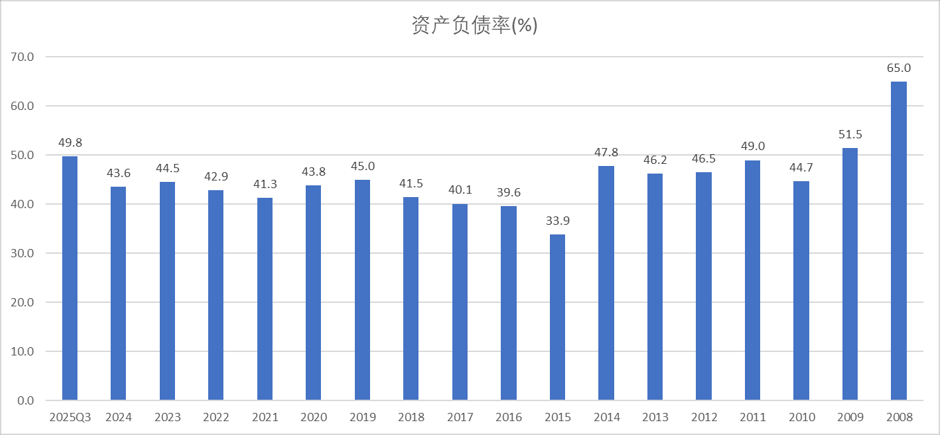 资产负债率:25Q3公司资产负债率49.8%,公司当前资产负债率略微上升,主要因为当前正处于第三次资本开支周期