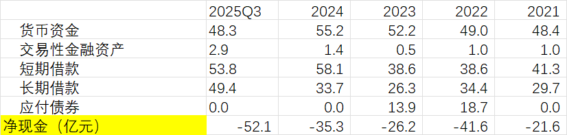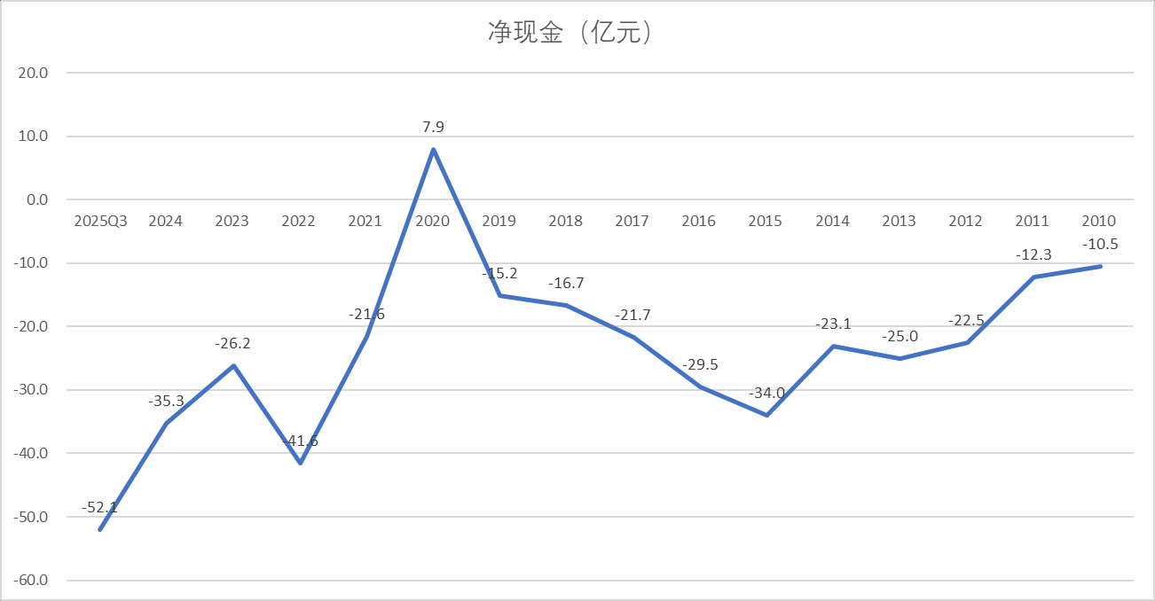 净现金情况:截止25Q3季度,公司当前账面的净现金52.1亿元,由于公司持续资本开支,公司账面的净现金处于恶化状态。