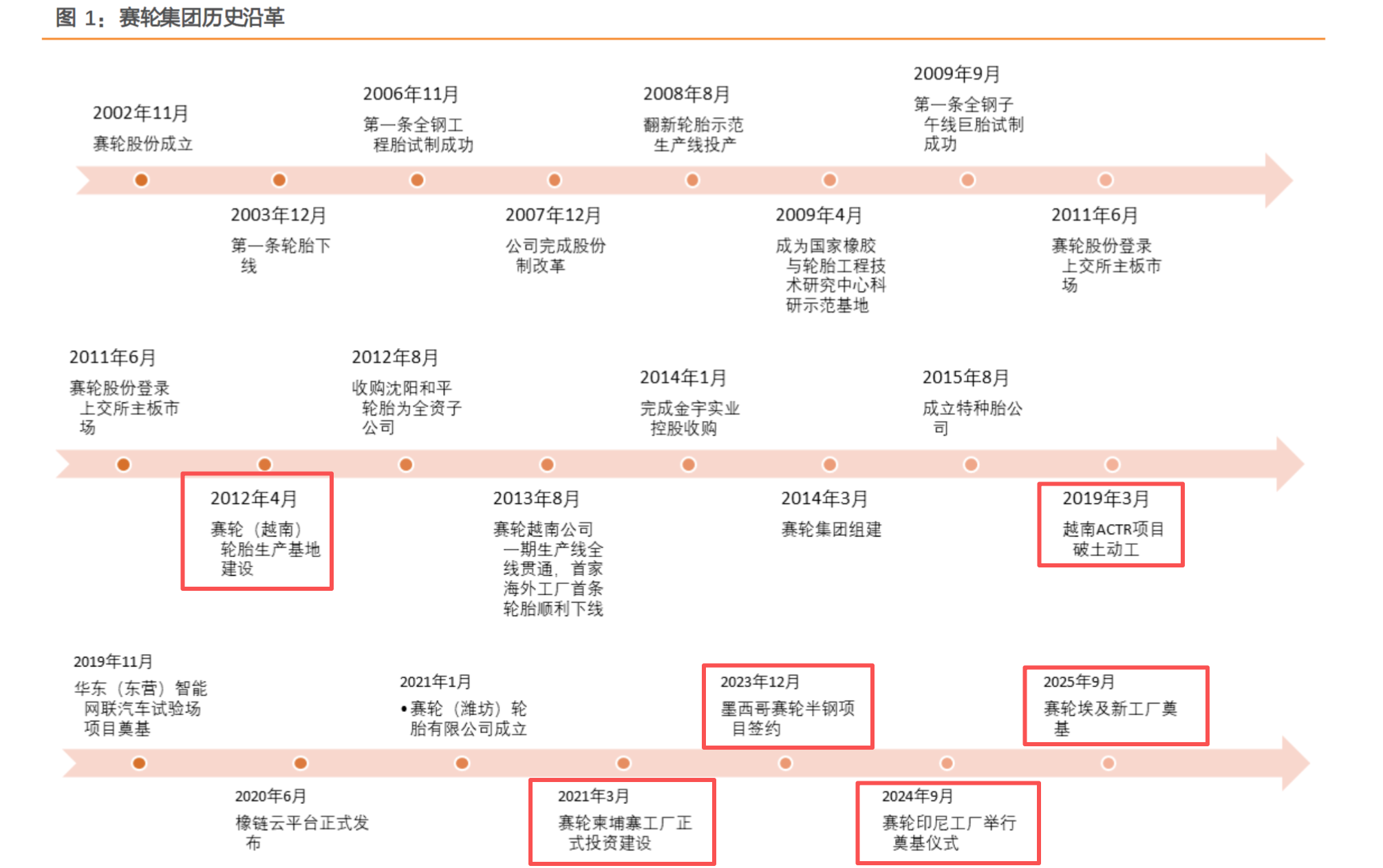 着重提一下公司的海外扩张,12年越南开工建设,19年越南ACTR项目动工;21年柬埔寨动工;23年墨西哥签约;24年印尼奠基;25年埃及工厂奠基。