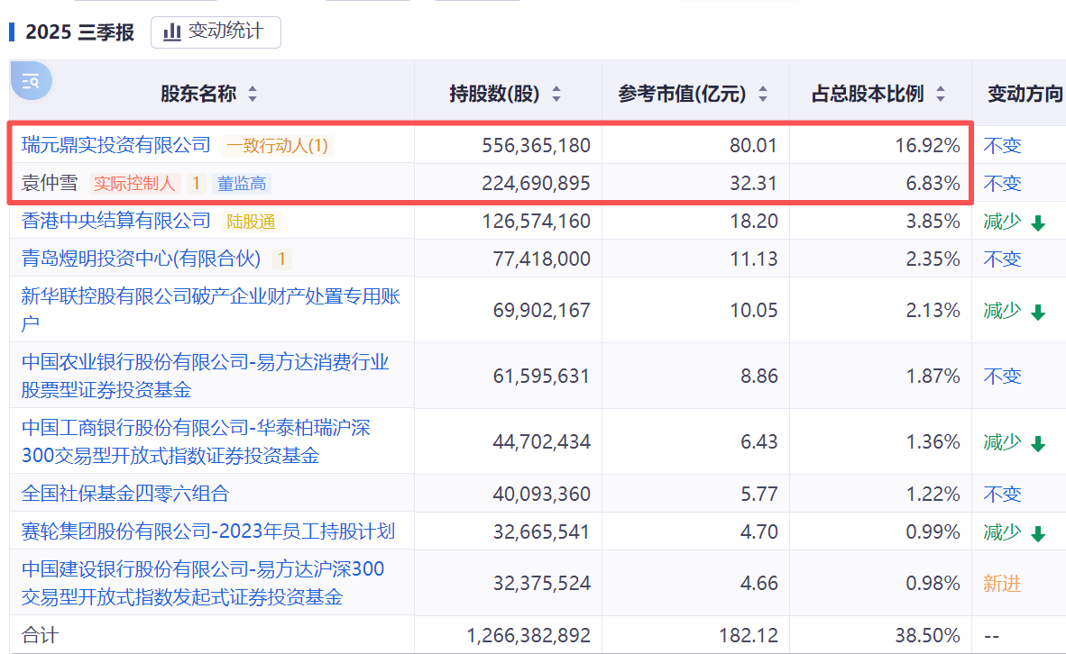 实际控制人袁仲雪,第一大股东也是袁仲雪实际控制(合计持有23.75%的股份)