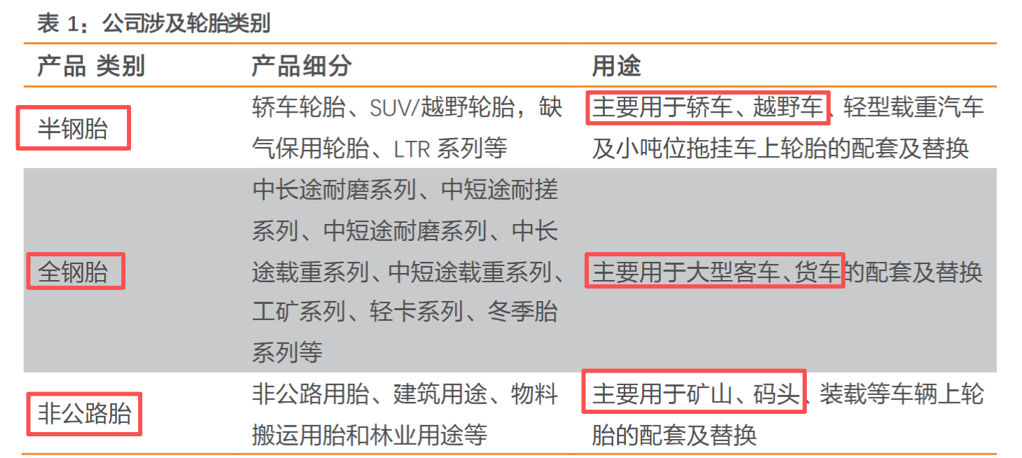 公司产品包括全钢子午胎、半钢子午胎以及非公路轮胎等