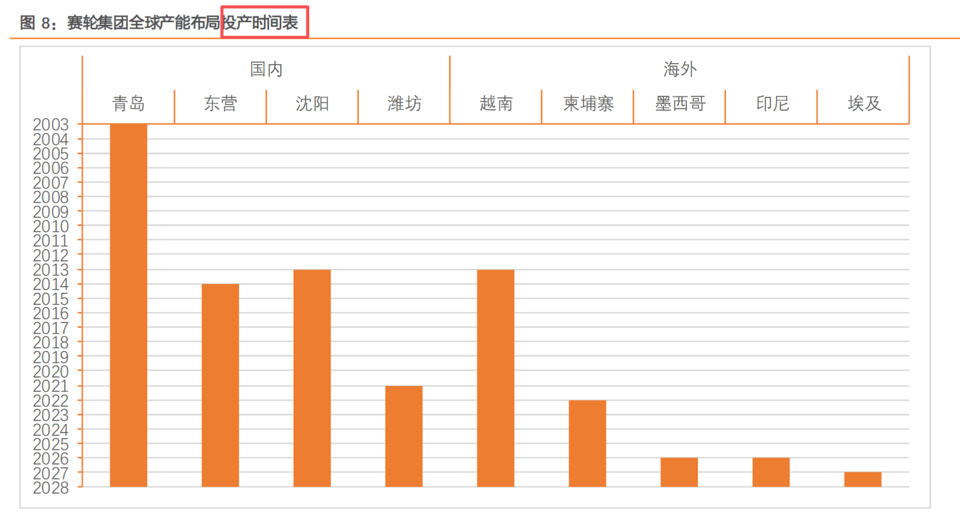 公司在中国的青岛、东营、沈阳、潍坊及海外的越南、柬埔寨、墨西哥、印尼建有轮胎生 产基地,埃及、沈阳新和平生产基地计划启动建设