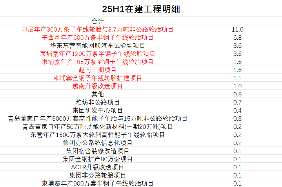 从在建工程明细来看,当前海外产能依然在不断扩建中。