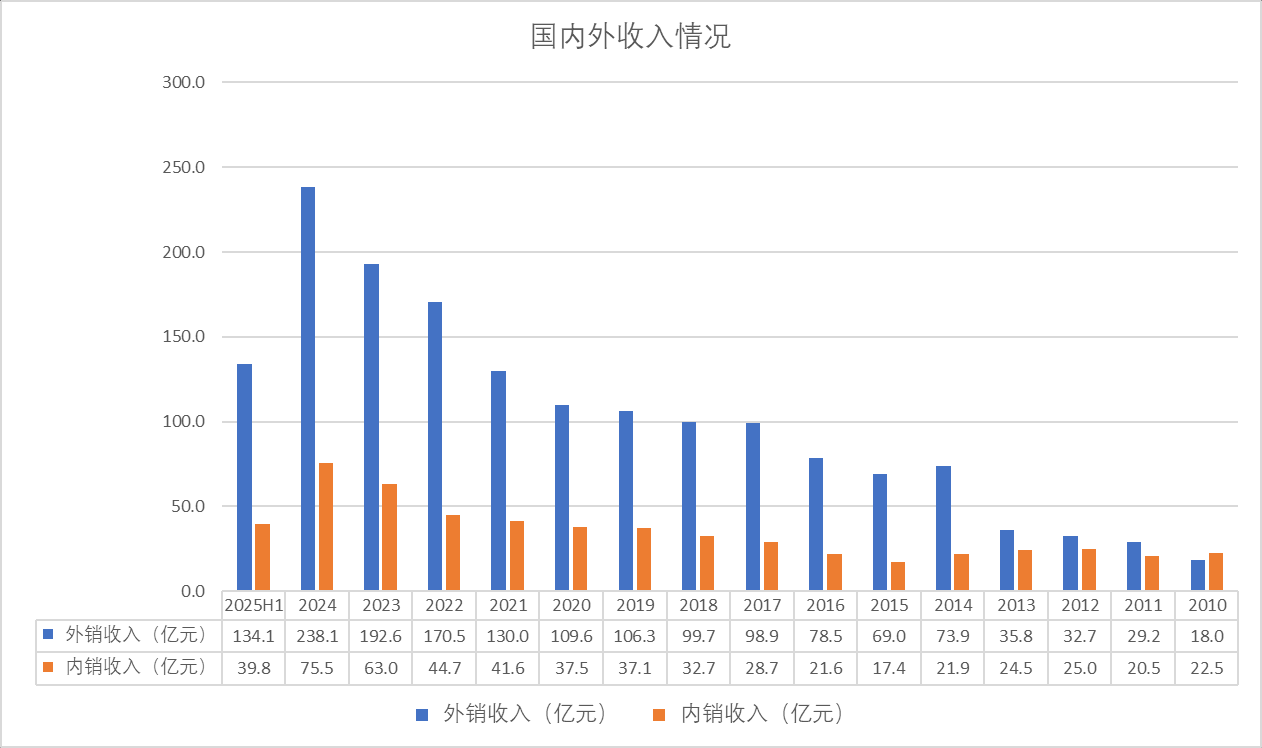 2010年的时候公司内销收入还大于外销,但是自2010年之后,公司的外销收入快速增长,24年年报,公司外销收入238亿元,内销收入75.5亿元。当前海外基地还在建设中,未来外销收入占比还有望进一步提高