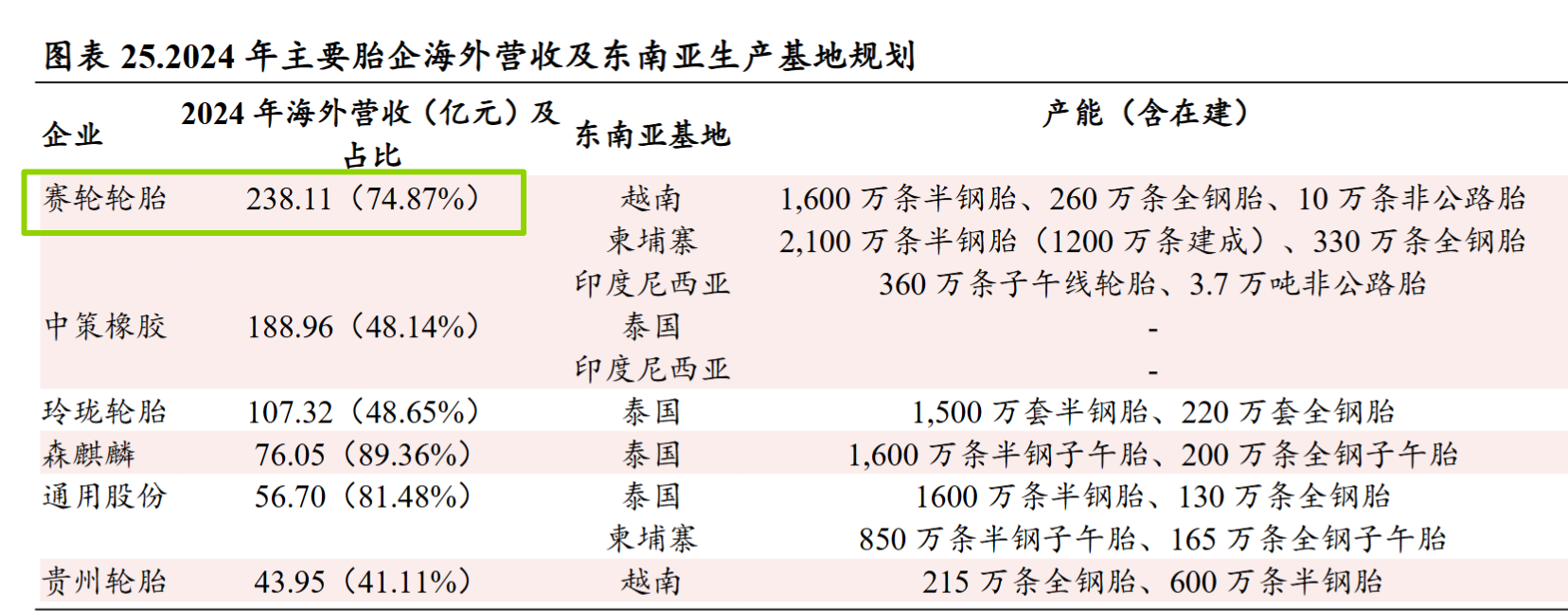 截止 25H1,公司共规划建设年产 3155万条全钢子午线轮胎、1.09 亿条半钢子午线轮胎、46.7 万吨非公路轮胎的生产能力。