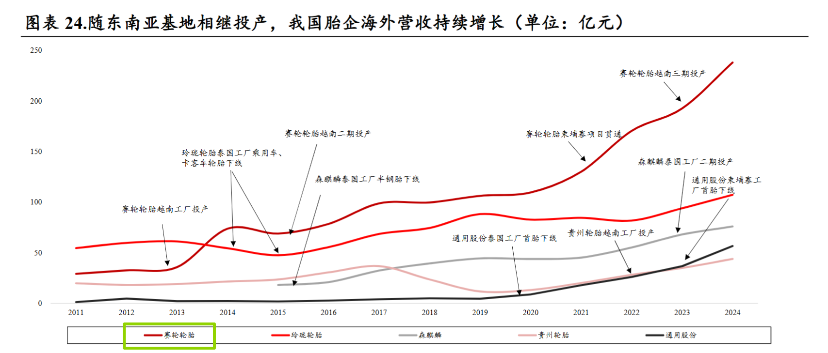 从上面这个划分来看,赛轮24年收入已经超过300亿元,赛轮在销售额上已经迈入了第二梯队的门槛。