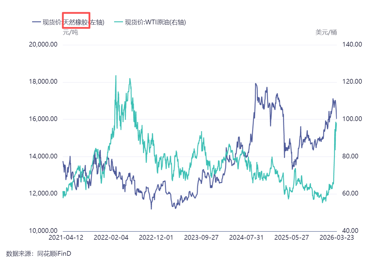 虽然天然橡胶与原油价格不是同向波动,但是也具有一定相关性。