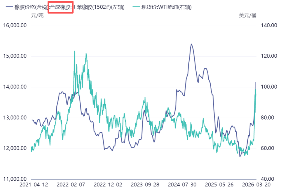 除了天然橡胶,合成橡胶与原油价格相关,生产的原材料炭黑,化工助剂等与原油也是相关的。