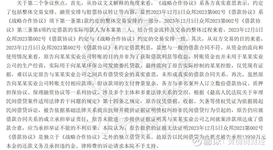西安市雁塔区人民法院认定,2023年12月5日签订的《借款协议》即为《战略合作协议》项下第一条第1款第(2)项约定的借款协议。原告孙建西提供的证据无法证明该《借款协议》是独立于《战略合作协议》之外的独立借贷关系。故原告孙建西以民间借贷为由要求被告承担1.395亿元本金的还款义务及承担违约金、律师费的诉讼请求本院不予支持。