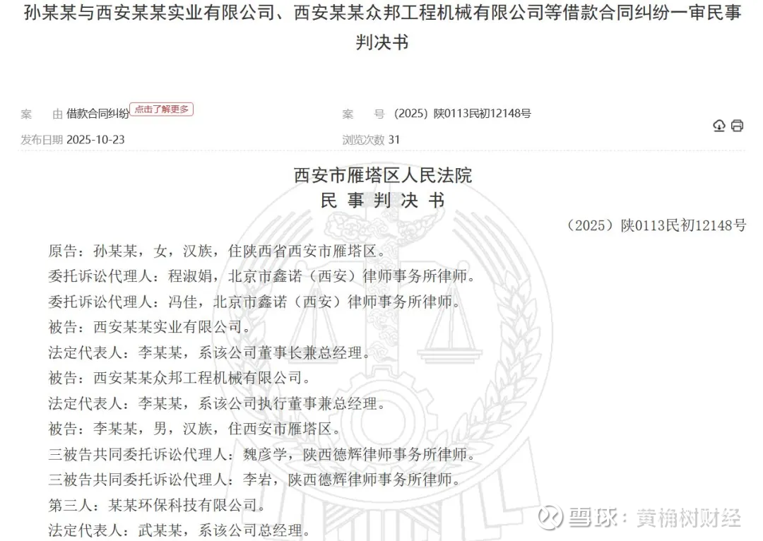 2025年10月23日,中国裁判文书网刊登的《孙某某与西安某某实业有限公司、西安某某众邦工程机械有限公司等借款合同纠纷一审民事判决书》【案号:(2025)陕0113民初12148号】,披露了孙建西和西安中旺众邦工程机械公司因股权转让未果产生的纠纷始末。