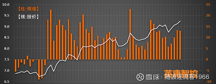 今天上午成交量萎缩了1430亿,情绪继续下滑,达到了5.17。情绪值5是一个重要的分水岭,5以下就是大盘短期底部区域。当下的A股呈现慢牛快熊的趋势,只要遇到急跌,就是低吸的绝好机会。