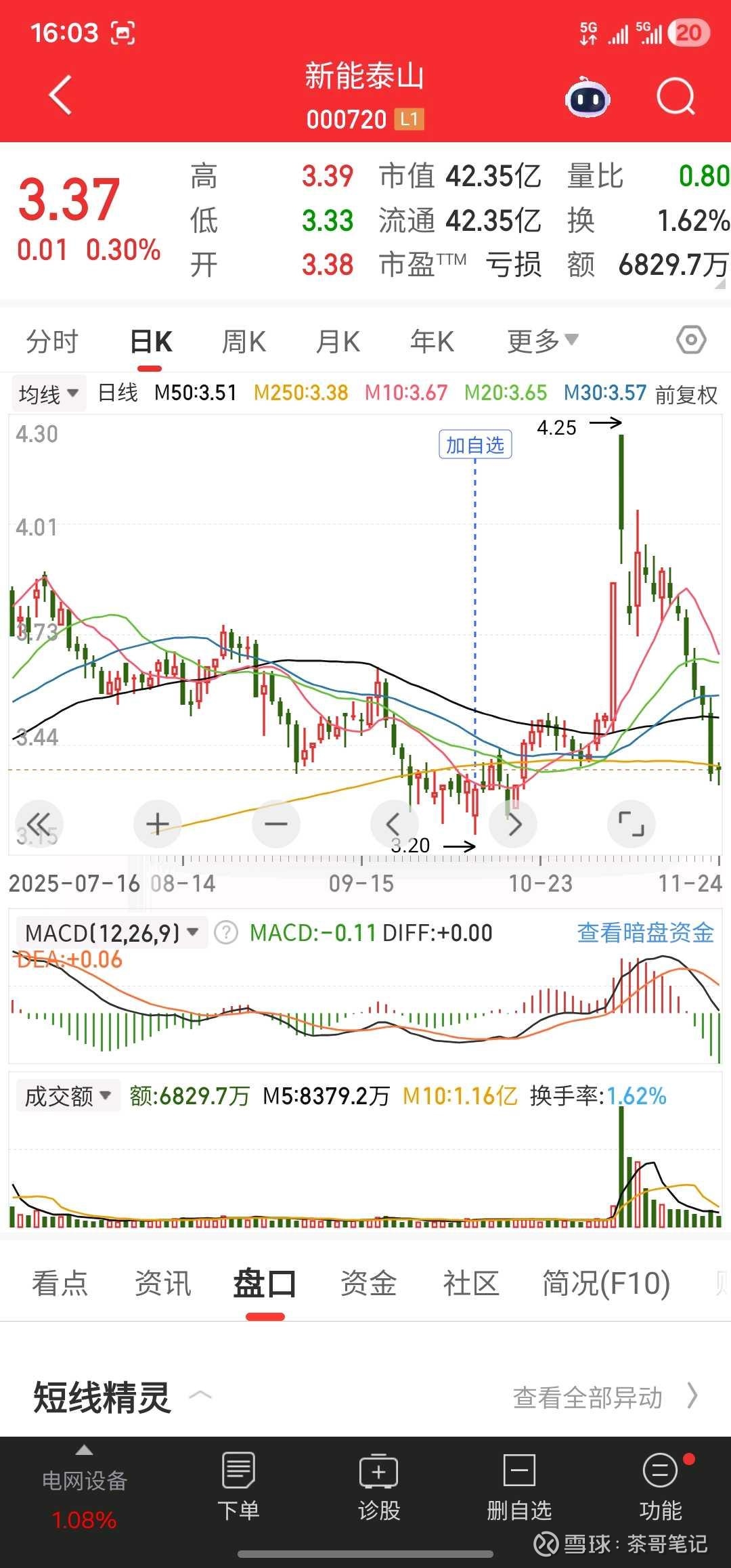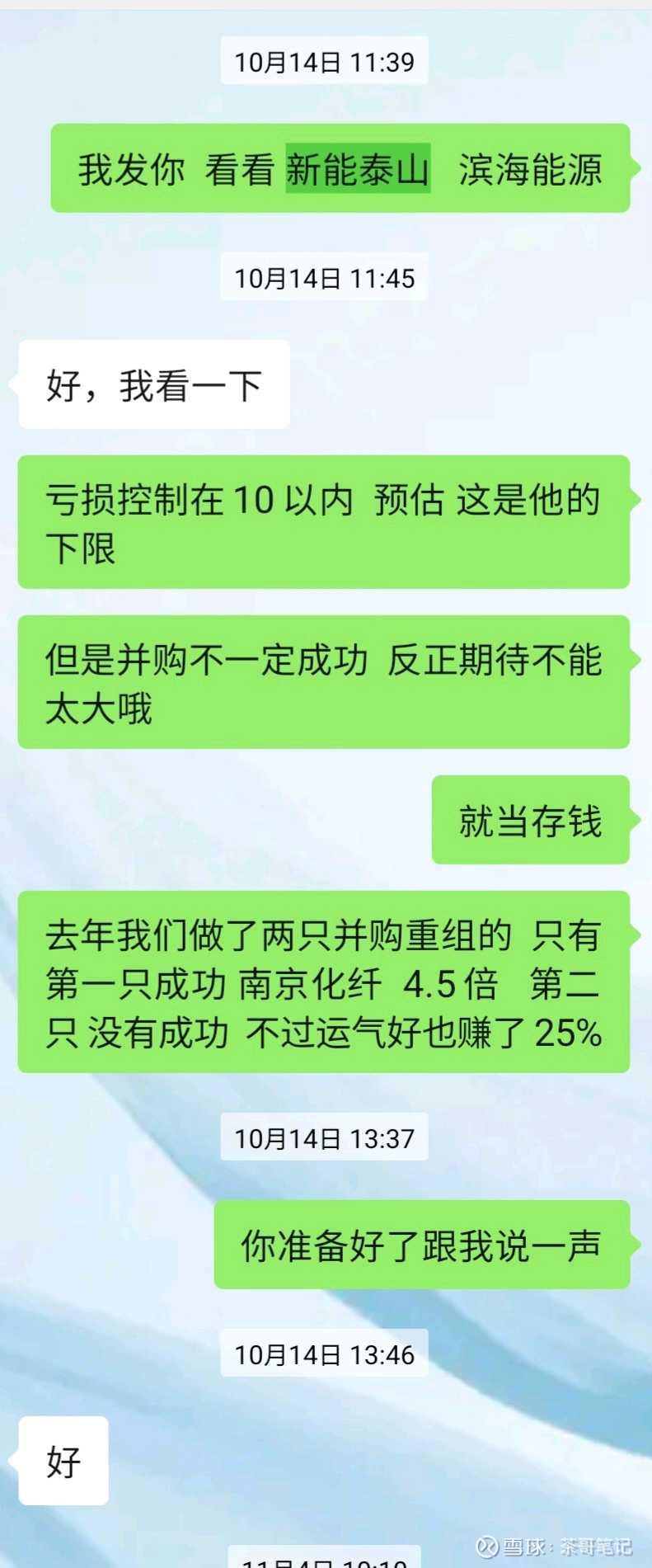 “各位球友,今天做个简单的复盘。回顾一下我在10月13日文章中提及并进行中线布局的两只重组题材标的——新能泰山(000720)和滨海能源(000695)。时至今日,两者的重组进程均已取得关键进展,股价也给出了丰厚的回报。粗略估算,这两笔布局带来的累计收益相当可观 。”