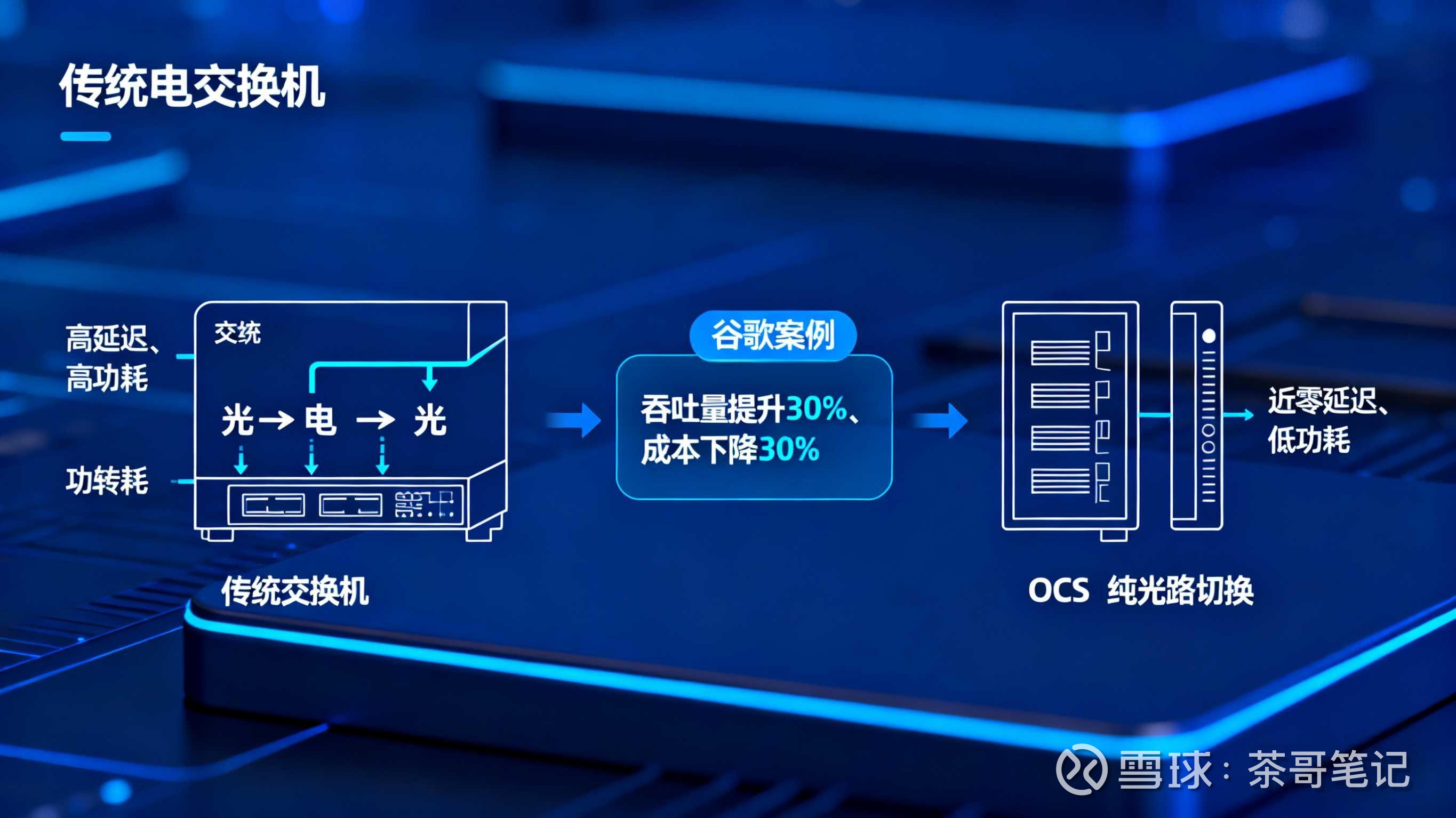 这就引出了今天的主角——OCS(光路交换器)。我把它称为 “AI算力的光速立交桥”。