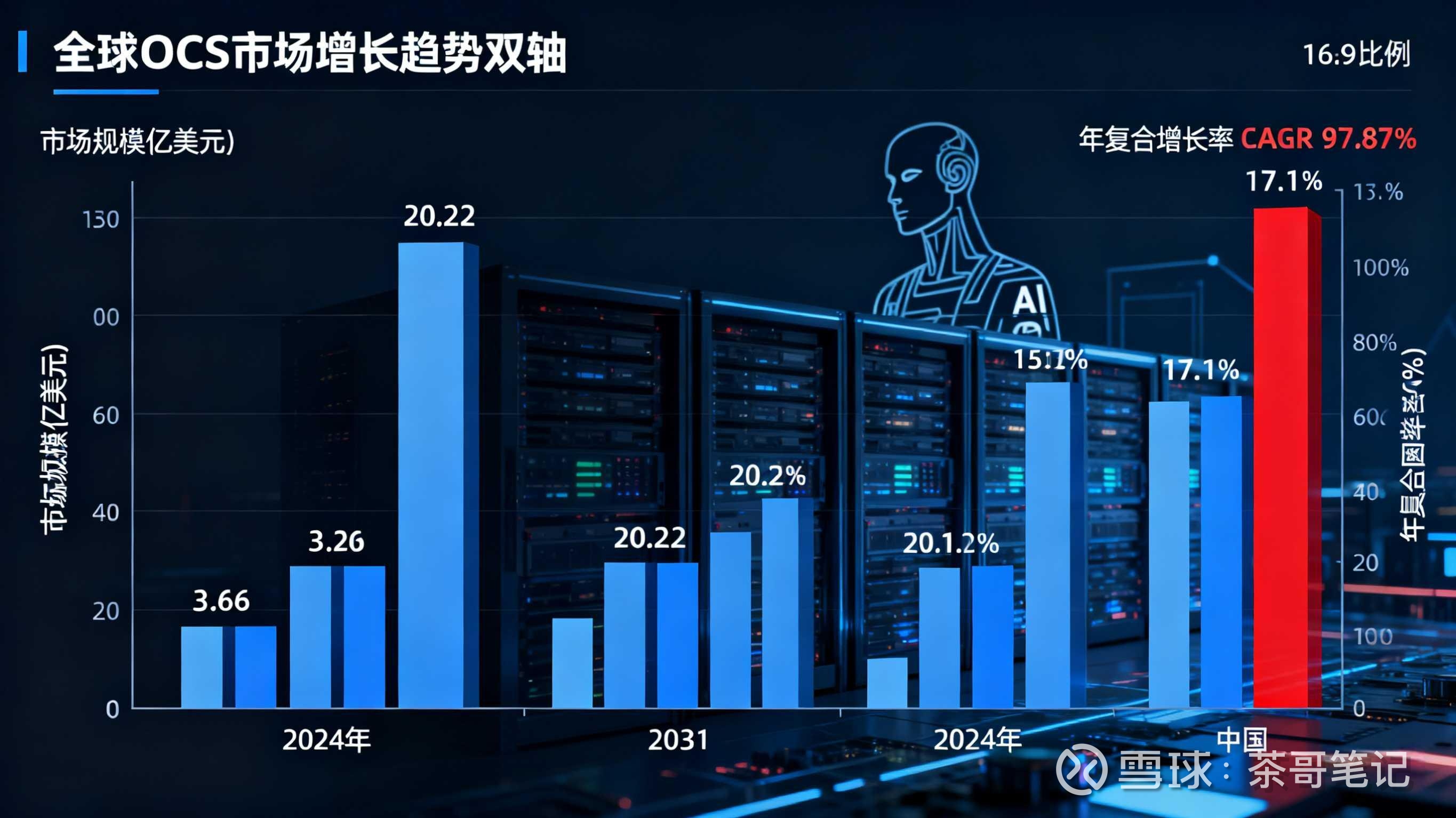 在AI千亿级参数模型训练这种“数据洪流”面前,OCS从“可选项”变成了“必选项”。研报预测,其市场将从几亿美元在未来几年冲向百亿美元,年复合增速超30%。这是AI浪潮中确定性极高的增量赛道。