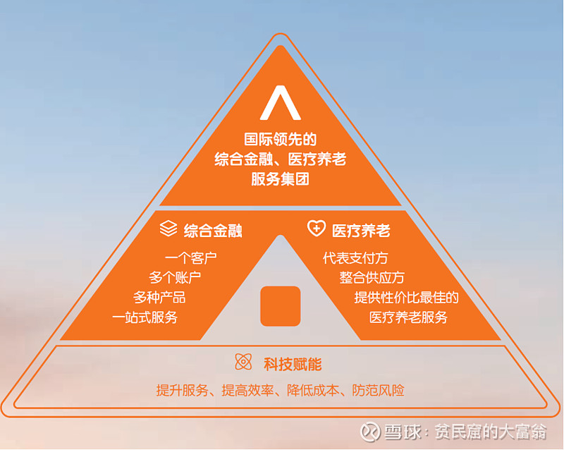 成长增量及护城河来自于医疗养老战略,支付方主要是中高端个人客户服务和大中型企业客户服务,供应方主要是自营旗舰和合作网络,这意味着平安可能不会和联合健康一样大规模铺开自有医疗资源建设,而是采用自营+平台轻资产模式运营。