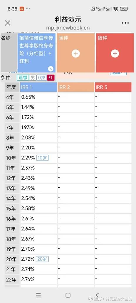 一句话总结:信享传世尊享版如同“财富防弹衣”——保底收益抵御风险,红利增值捕捉机遇,健康服务守护生活品质,是家庭资产配置的“压舱石”。@今日话题 @雪球达人秀 $招商银行(SH600036)$ $中国平安(SH601318)$ $中国太保(SH601601)$ #