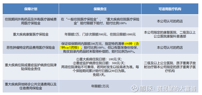 恶性肿瘤特药费用:保证续保期间内限额200万元,覆盖199种特药(含7种CAR-T药物),需要到公司认可的药店购买,如果有这个需求,一定要提前联系保险公司!