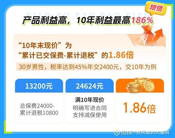 总结,这款产品的优势是:收益率高,如果自己是高收入群体,内部收益率轻松超过10%;有健康保障,多一份守护;增值服务费非常好,而且没有门槛。