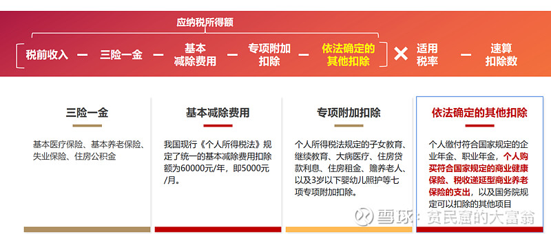 三险一金,基本减除费用和专项附加扣除都是一样的,没什么操作空间,花头就在依法确定的其他扣除:个人养老金和税优健康险。
