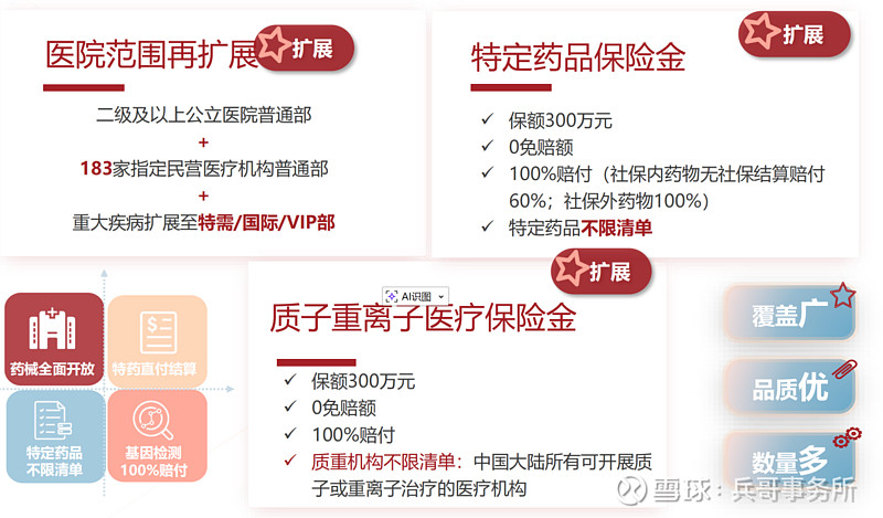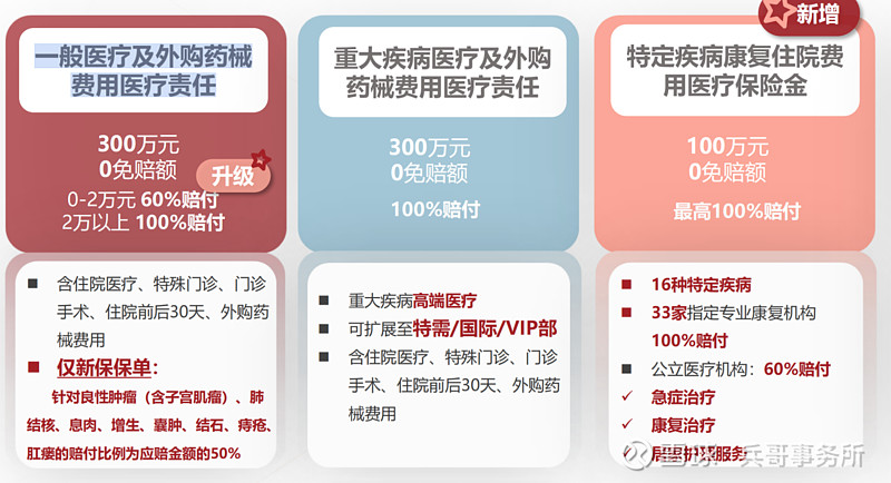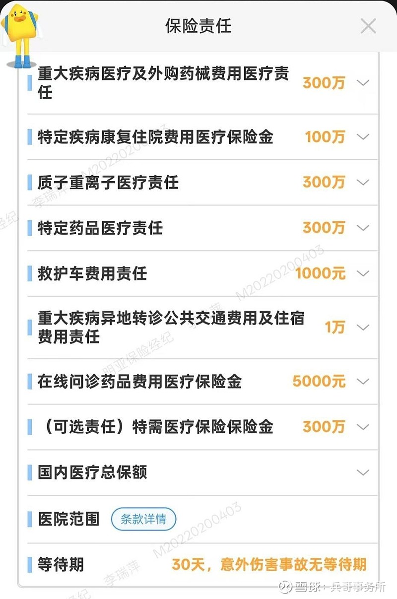 这个保险责任完美解决了医疗的三大需求:第一个是正常的正常医保,第二个是特效药原研药的使用,第三个是康复和护理的开支。