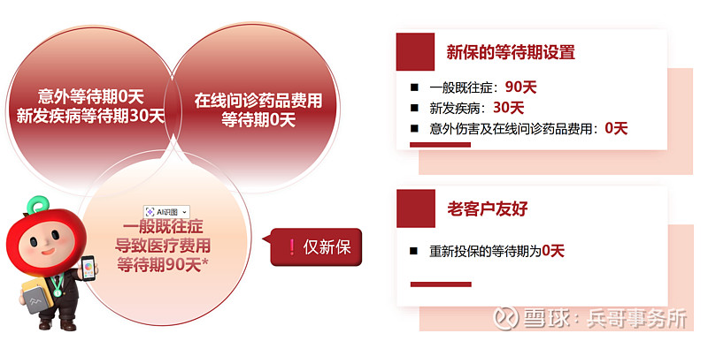 对于医疗险和重疾险有个等待期的问题,等待期内保险公司是没有保障责任的,不同的产品规定不一样,具体对于这一款产品如图所示: