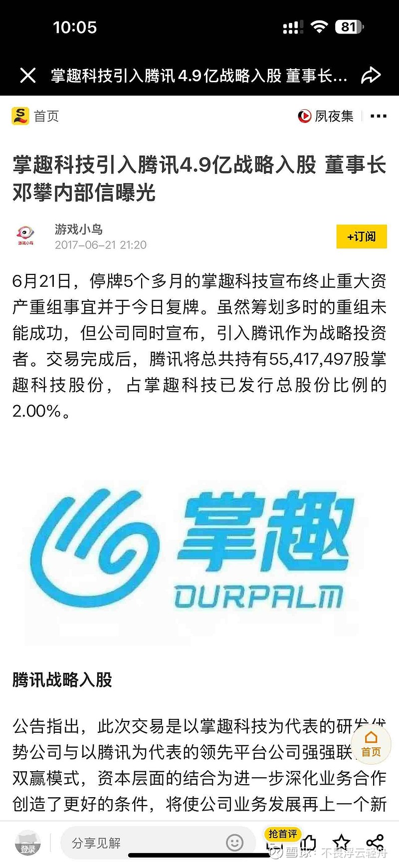 历史上确实入股过掌趣,这次不知道是不是真的,赌一把,反正在低位