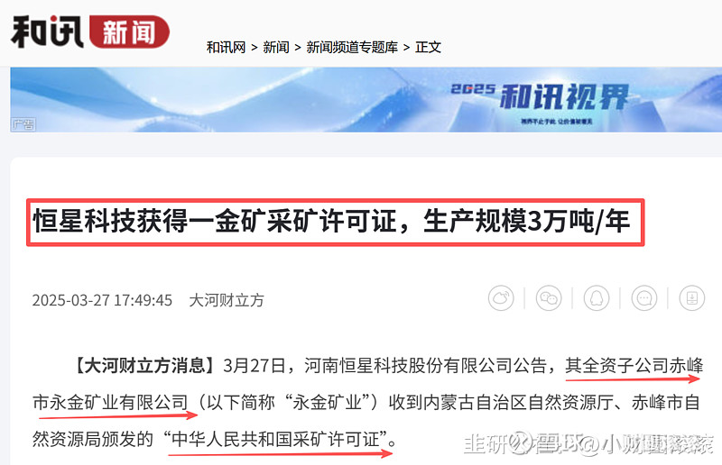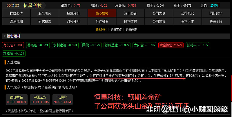 许可有效期至 2025 年 9 月 30 日,后续可提前申请延续。这意味着恒星科技正式拥有合法开采金银的资质,打开了在矿产资源领域发展的大门。