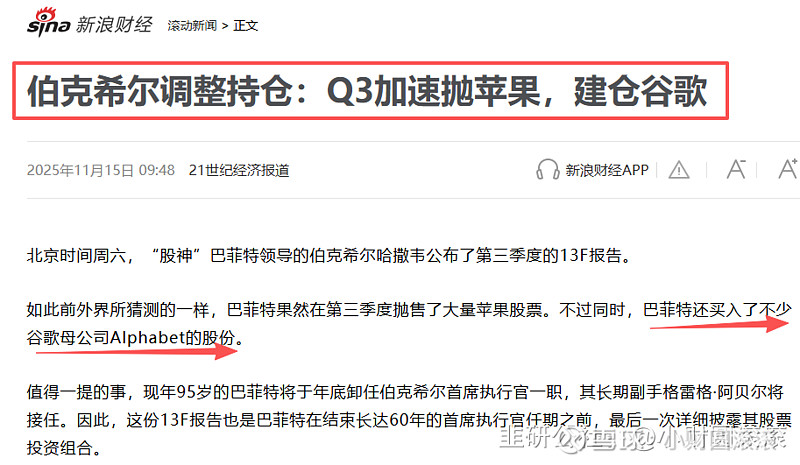 资本巨头用脚投票:伯克希尔三季度新建仓 1784 万股 Alphabet,使其跻身第十大持仓,作为价值投资标杆,此举背后是对谷歌 AI 技术落地与商业潜力的深度认可,为科技板块注入强心剂。