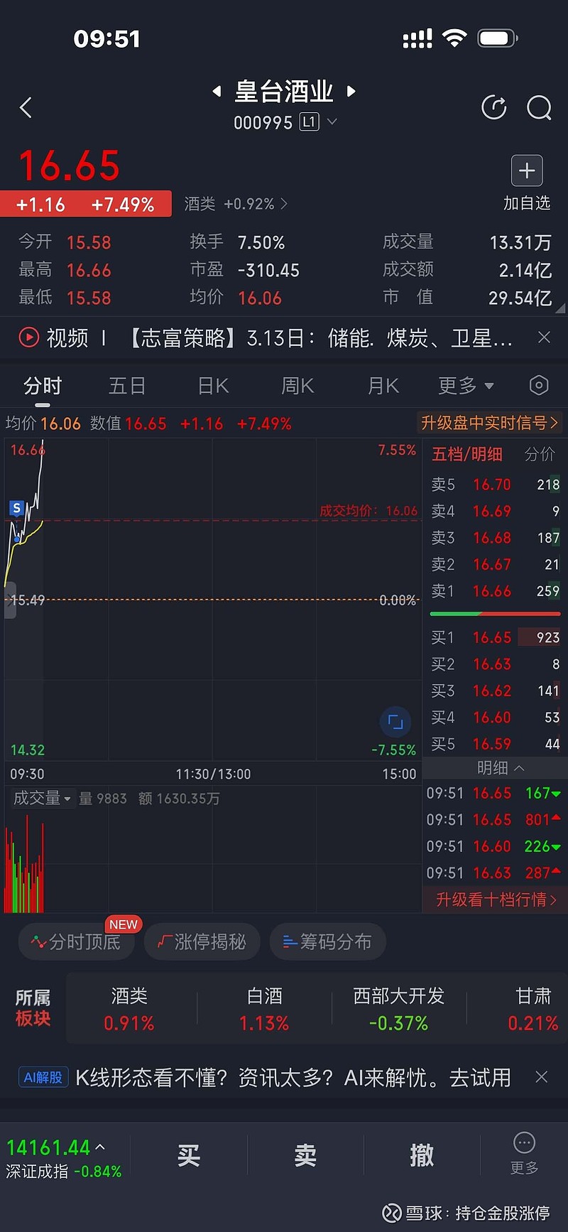 持仓金股涨停