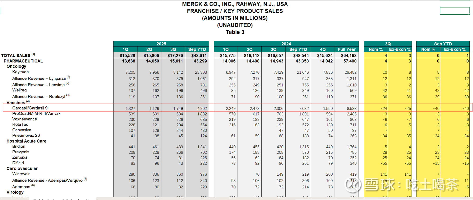 MSD半年报、网页链接{Our Q3 2025 financial results}出来了,把九价相关的贴出来下,也可以自己去看原文。$万泰生物(SH603392)$