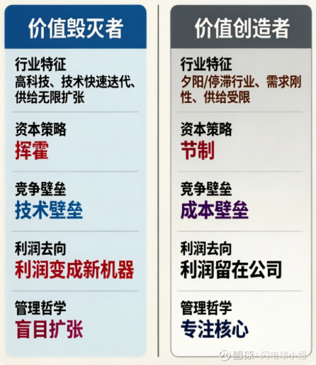 结合这两章内容,我们可以清晰地画出“价值毁灭者”与“价值创造者”的分野: