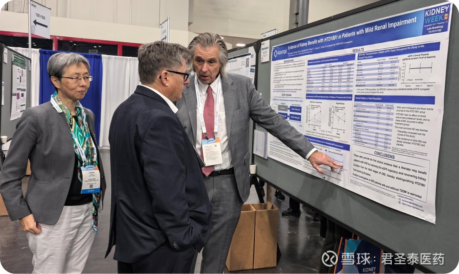 君圣泰医药(股票代码:2511.HK),一家专注于开发多功能创新疗法,以解决代谢性慢病未满足临床需求的创新药公司,今日宣布,在第58届美国肾脏病学会(ASN)年会(美国休斯顿)上展示HTD1801在轻度肾功能损害患者中的肾脏获益数据。