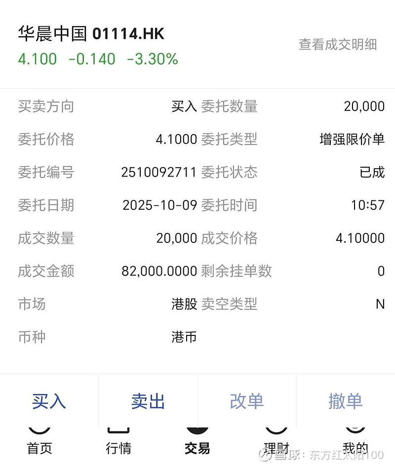 $华晨中国(01114)$ 华晨中国今天终于有点像样的回调了啊,该走的人是到了该走的时候了,短期赚的也不少了,换一波儿人咱们继续前进。还是那句话,不看好新世代,到这个位置确实可以下车了。港股还有点散碎银子。继续买进2万股。