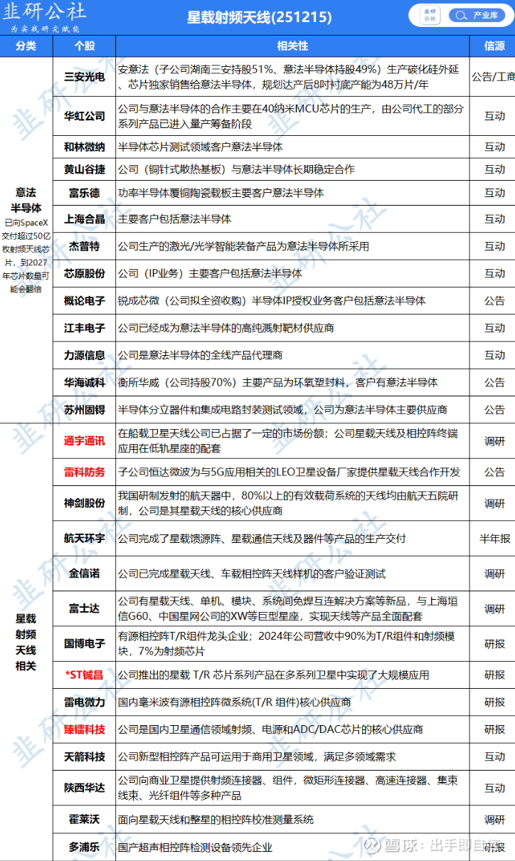 2、意法半导体目前已SpaceX交付了超过50亿枚射频天线芯片,用于SpaceX的“星链(Starlink)”卫星网络。据意法半导体的一位高管透露,在接下来的两年里(到2027年),通过此次合作交付的芯片数量可能会翻倍。