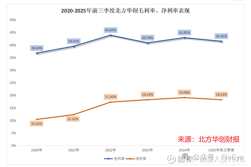 那公司盈利能力的降低又是为何?2025年前三季度,北方华创毛利率为41.41%,同比下降2.95个百分点,带动净利率同比下降3.6个百分点到18.24%。