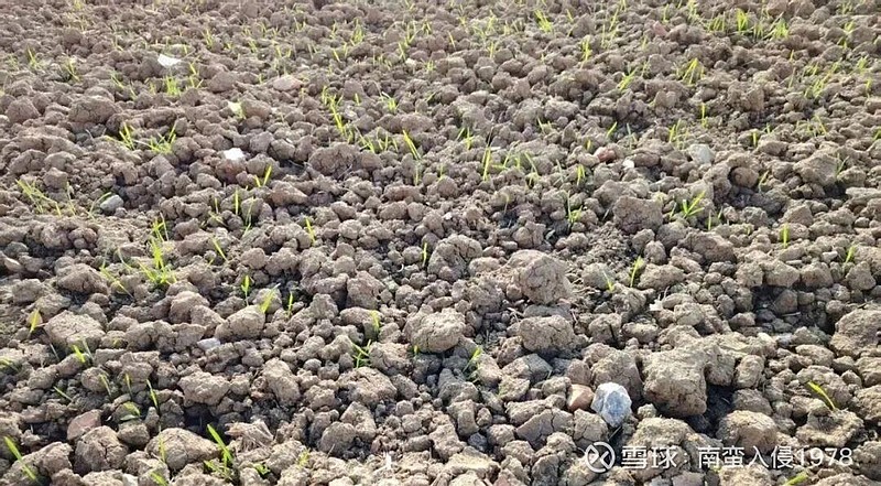 02整地播种质量差引起的弱苗成因特征:旋耕镇压不实、播种过深,导致出苗缓慢、苗势瘦弱、根系发育不良。