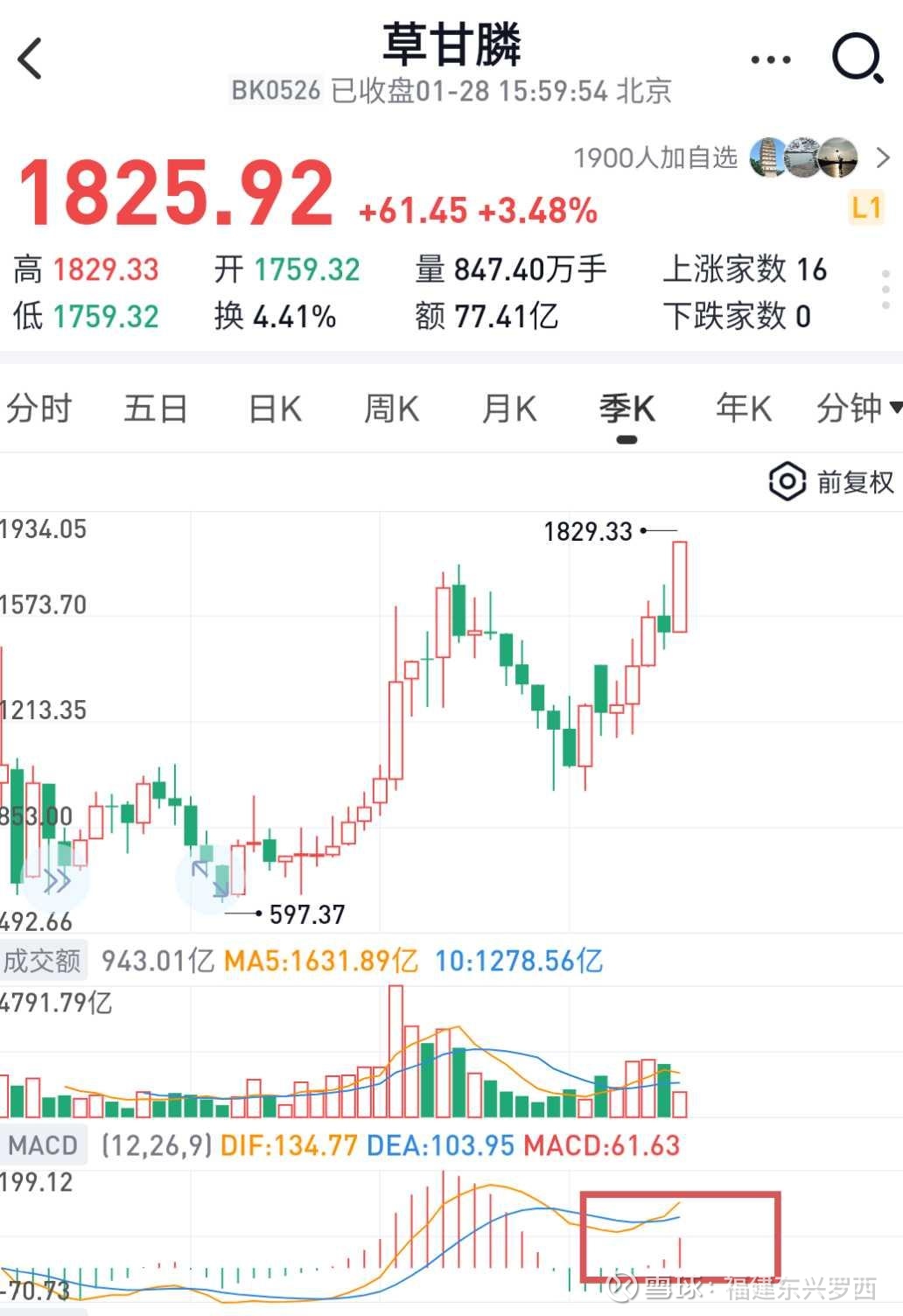 化工板块细分的草甘膦已经历史新高,而是季K线形成金叉,意味着整个板块会继续狂奔。