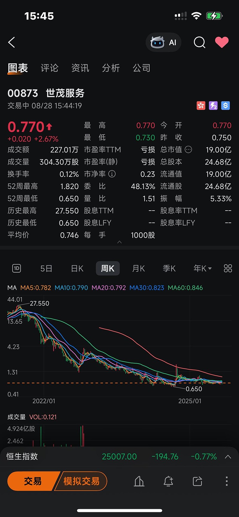 $世茂服务(00873)$ 值得博一下,因为业务在好转,计提并不影响价值,我想再加一些仓位,半年能搞到4000万平,8亿合约,很厉害了。手握2.2亿在管面积,3.4亿合约面积,账上48亿现金,才18亿估值,值博率很高