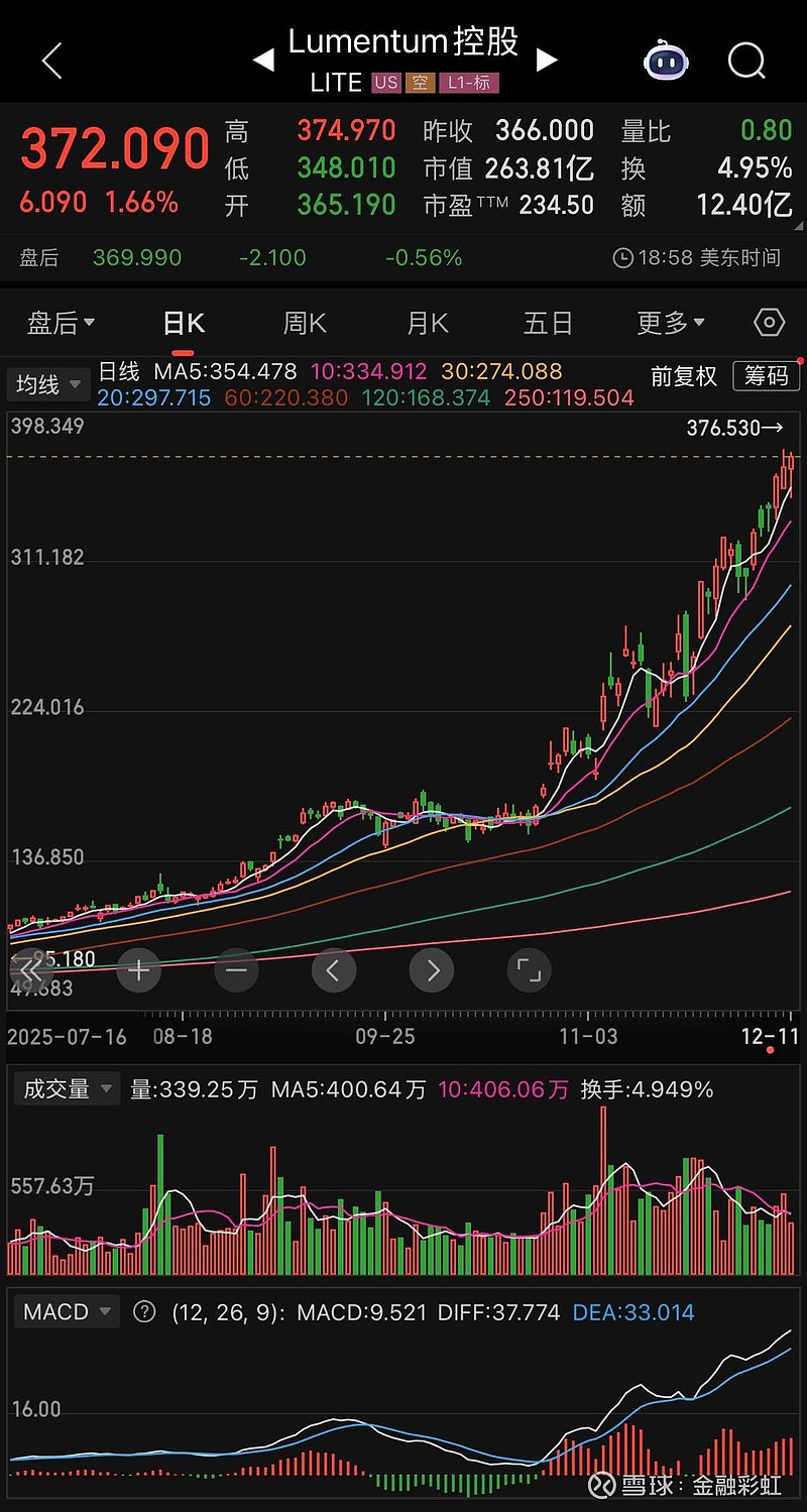 博通财报和电话会披露后市场更加相信【光】了Tomahawk 5 Bailly纯光交互也开始放量短短一个月Lumentum市值要破2000亿人民币A股的【光】最近有表现,但好像远远不够以天孚为例,Lumentum是他的上游企业短短一个月市值却出现了“倒挂”这得益于华尔街投行对【光】的价值提升在这点,A股市场远不如美股市场$Lumentum控股(LITE)$$博通(AVGO)$$谷歌C(GOOG)$