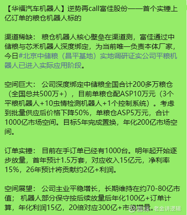 $富佳股份(SH603219)$ ,粮仓机器人。