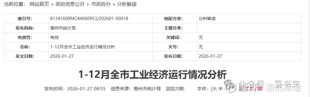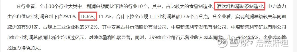 古井贡酒所在的亳州市,市统计局 2026 年 1 月 27 日发布的《2025 年 1-12 月全市工业经济运行情况分析》中明确披露:2025 年全年,当地食品制造业、酒饮料和精制茶制造业、电力热力生产和供应业利润总额分别下滑 29.1%、18.8%、11.2%,三者合计下拉全市规上工业利润总额 17.9 个百分点。