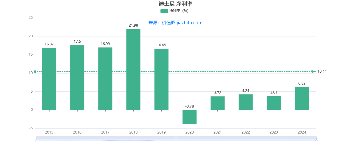 但进入 2020 年,各项指标集体 “跳水”:净利润直接滑向 **-24.42 亿元 **(由盈转亏),净利率骤降至 **-3.78%,毛利率下跌至 32.89%,经营性现金流净额更是由正转负,变为-24.42 亿元 **。这种从盈利到巨亏的剧烈波动,在迪士尼的发展历程中都属罕见。