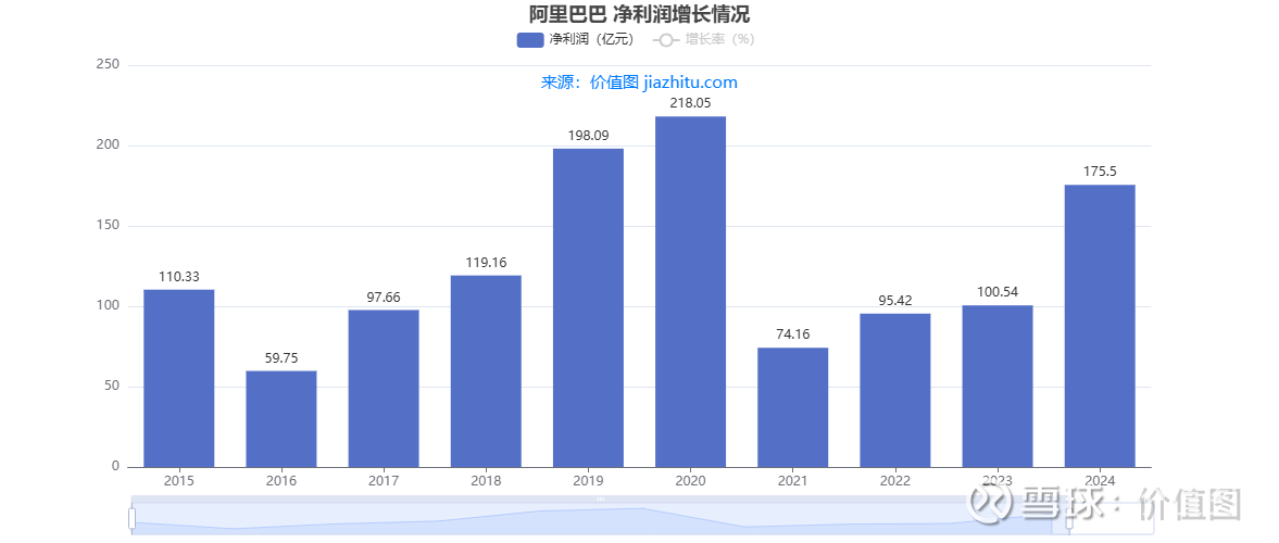 净利润就像 “成绩单”,能直接看出公司赚了多少。阿里的净利润走势,简直是 “过山车”: