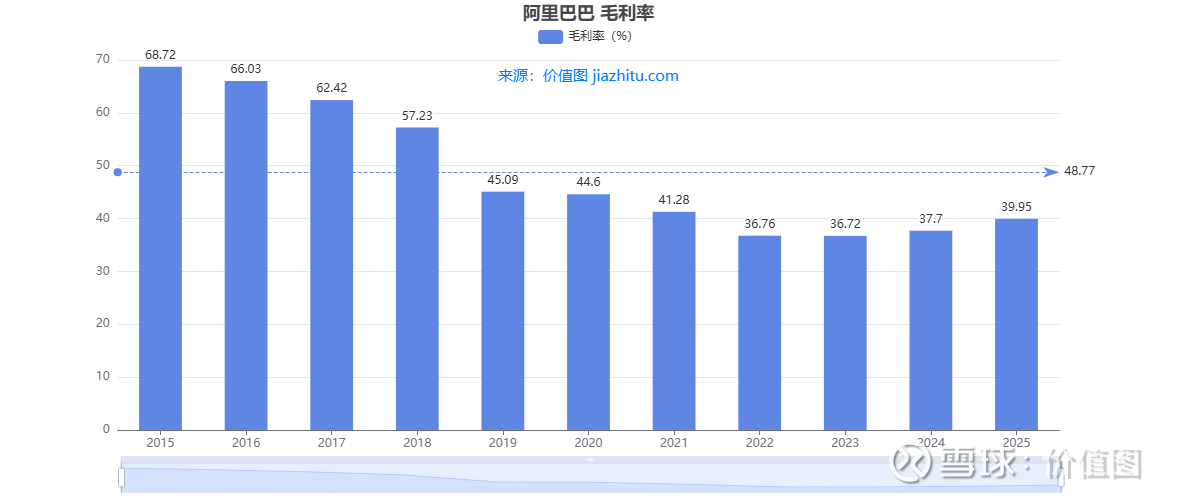为啥会回升?可能是淘宝、天猫的商家更赚钱了,平台提成更稳定;也可能是阿里云这些高毛利业务(云计算本身毛利率就不低)越做越好,拉高了整体水平。总之,阿里 “赚钱的本钱”,正在慢慢恢复。