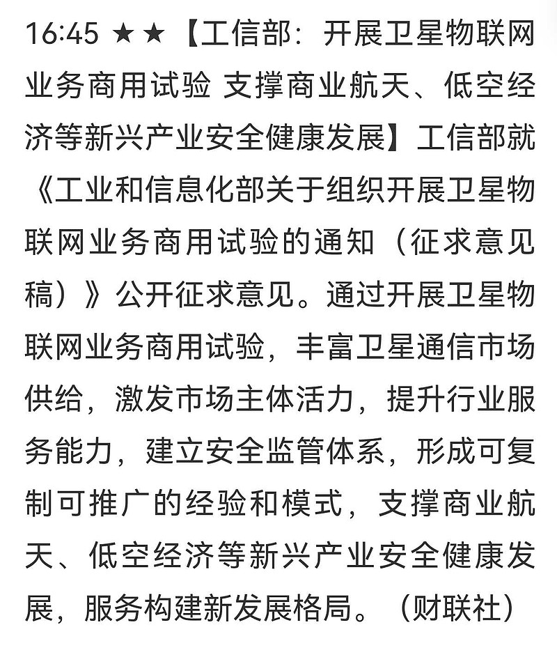 $信维通信(SZ300136)$ 工信部今天发布卫星物联网业务商用试验,我怎么感觉跟我的信维和创远信科持仓都有关系?信维独供Xspace的卫星连接器和线缆已好多年,今年下半年开始供亚马逊连接器和天线,技术实力肯定有,国内也有合作方,就是国内没商用没供货,感觉信维有机会把这块业务做大,特别是汽车卫星天线这块可能有点量。创远信科正准备收购的湖南卫导,就是做卫星测试导航业务的,开展卫星物联网啇用后各地监测管理部门的测试设备和软件总要增加的,关键是现在体量够小,增长空间足够大。持股要有不凡的信念