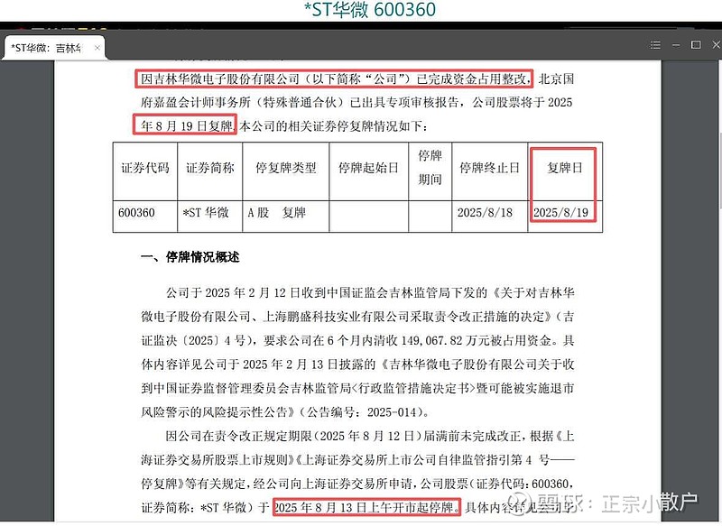 $ST新华锦(SH600735)$ 关于停牌的时间可以参考去年的$*ST华微(SH600360)$ ,只要还钱了就马上能复牌,没有硬性规定,一定要停牌2个月。华微去年8月13日停牌,8月19日整改完成复牌,只停了几天。本人不持有新华锦,只是单纯说一下政策规定和案例!