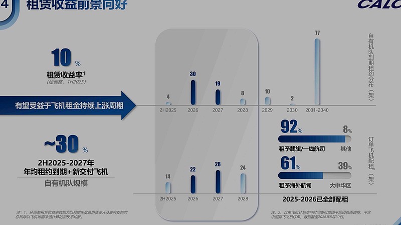 目前2025下半年到2027年租约到期和新飞机交付117架飞机,目前自有151架飞机,77%资产进行换血,上述条件可能在未来两年实现。