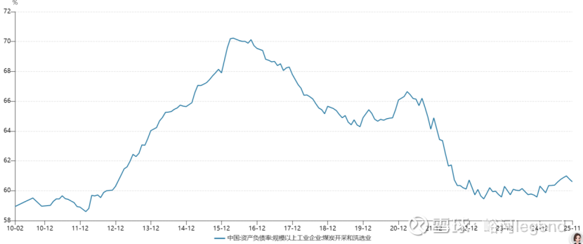 最后看资产负债率。2025年,煤炭开采和洗选业资产负债率略有抬升,约为60%,整体处于健康水平。从纵向历史对比来看,这一负债率处于过去15年的极低位置:上一轮周期低谷的2015年前后,行业资产负债率一度逼近70%,部分企业面临严重的偿债压力和资金链断裂风险,这也是2016年国家为什么要大力推进供给侧改革。再不改,整个行业将直接崩溃!当前60%的负债率,意味着行业整体财务状况稳健,企业偿债能力较强,相较于上一轮周期低谷,具备更强的抗风险韧性。